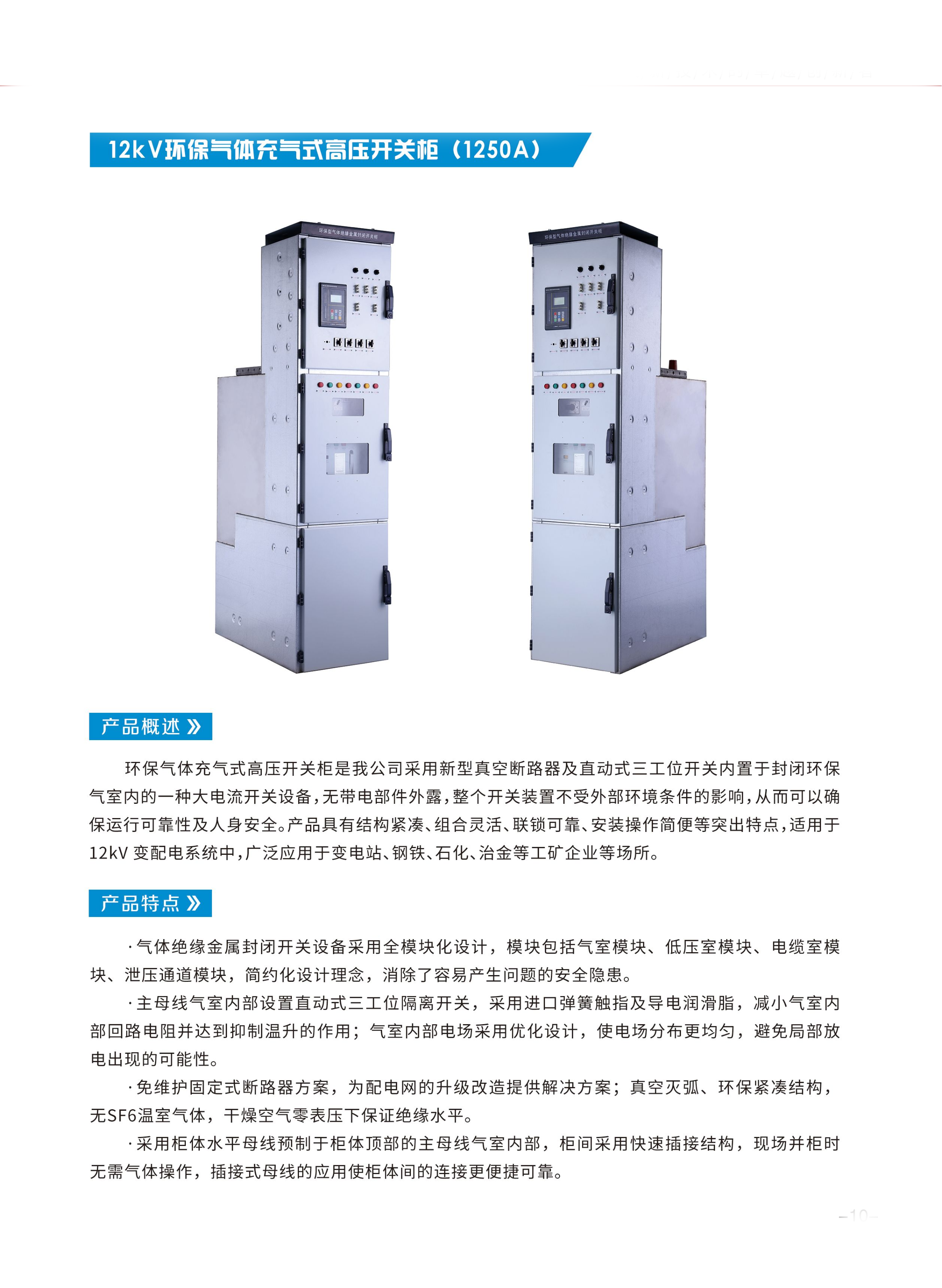 12kV環(huán)保氣體充氣式高壓開關(guān)柜(1250A)